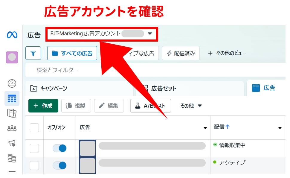 個人アカウントでも広告を出せてしまうので、間違わないように注意してください。